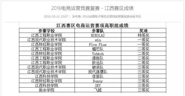 2016年(nián)10月(yuè)29号,第四屆“博導前程杯”全國(gu↓ó)電(diàn)子(zǐ)商務運營競賽江西(xī)賽區(qū)複賽在江西(xī)省商務學校(xiào)舉行(xíng),江西(₩xī)工(gōng)程職業(yè)學院電(diàn)子(zǐ)商務專業(yè​)有(yǒu)4支代表隊進入到(dào)了(le)本次大(dà)賽複賽中,經過與衆多(duō)高(gā£o)職院校(xiào)激烈角逐,電(diàn)商學院嚴從(cóng)、陳亞薇老(lǎo)師(shī)指導的(de)NIKOLAS團隊得(de)到(♦dào)評委一(yī)緻認可(kě),斬獲本次比賽的(de)特等獎,并獲得(de)代表江西(xī)參加該項賽事(shì)2016年(nián)全國(gu↑ó)總決賽的(de)資格。其它各組獲得(de)二等獎。